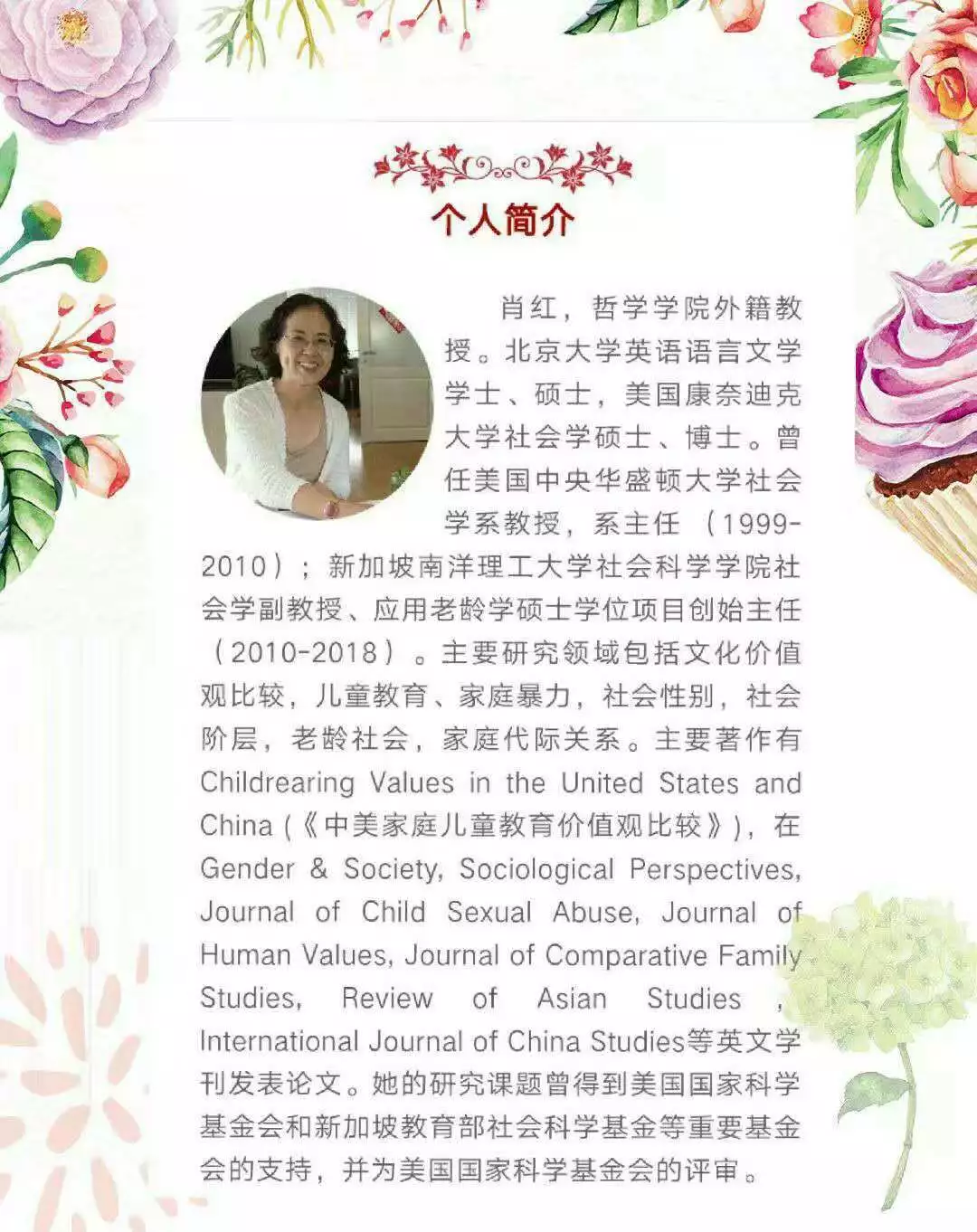 自述:肖紅教授