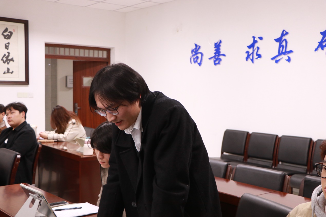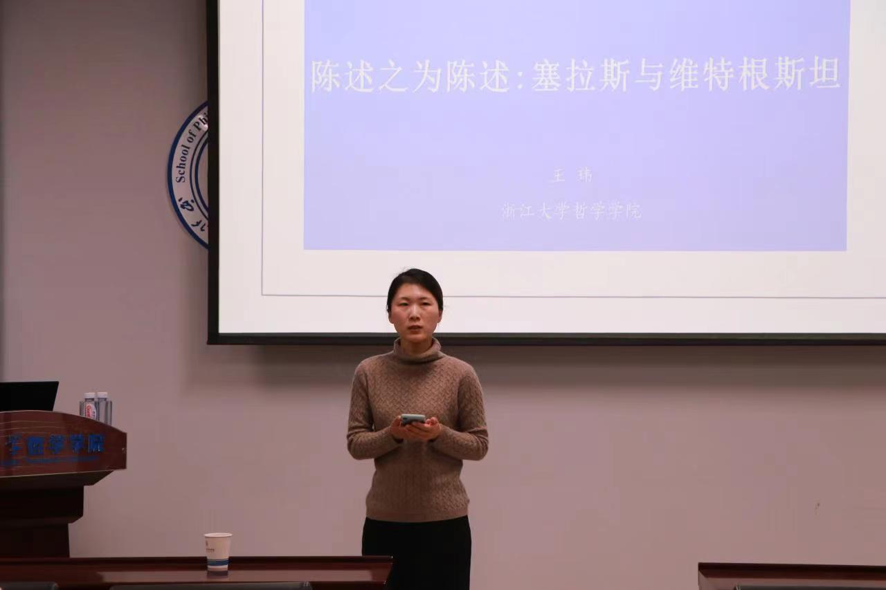 11月17日晚,浙江大學(xué)437必贏會員中心百人計(jì)劃研究員、博士生導(dǎo)師王瑋做客“西北哲學(xué)講壇”第48講,在長安區(qū)西學(xué)樓301437必贏會員中心會議室作了題為“陳述之為陳述:塞拉斯與維特根斯坦”的專題講座。本次講座由馬芳芳老師主持,邵世恒副教授與談,437必贏會員中心師生30余人參加。